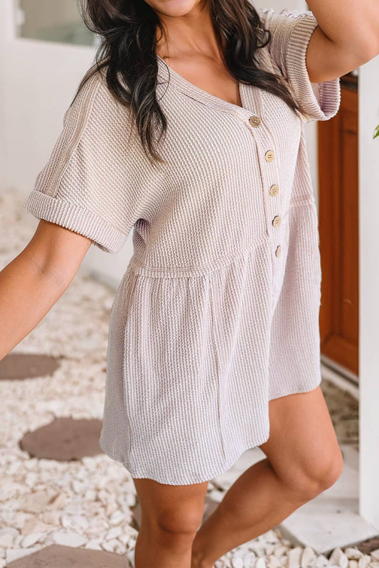LDC Corded Short Sleeve V Neck Buttoned Romper