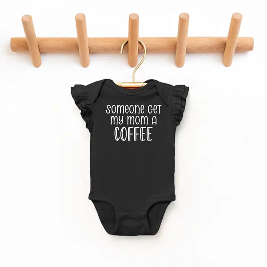 Somoeone Get My Mom A Coffee Toddler and Infant Flutter Sleeve Graphic Tee