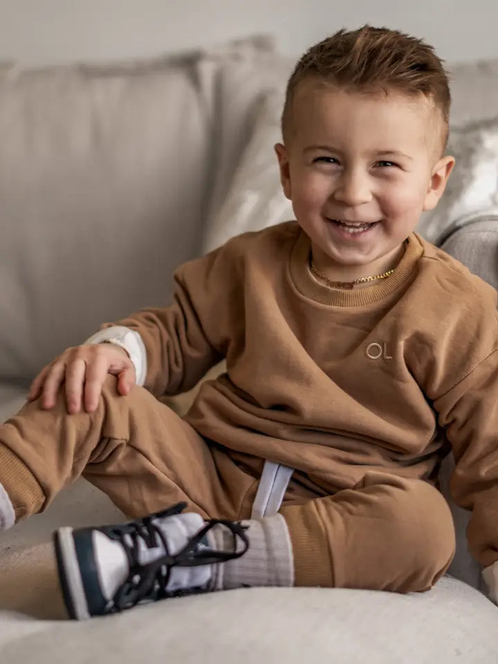 Features: * Fit: between fitted and relaxed * Medium weight French terry fabric * Ribbed detail at cuffs and waistband * Functioning drawstrings * Side pockets * 85% cotton, 15% polyester Sizing: True to size. Size up if in between sizes. Measurements below are measured in cm with the garment laid flat and may differ by 1-2 cm. Model is 41 in. 36 lbs. wearing 4-5T.