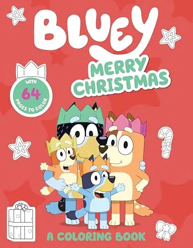 Color in a game of Veranda Santa, a Christmas swim, and more! This coloring book features more than 60 pages of Bluey and Bingo celebrating Christmas with their friends and family.